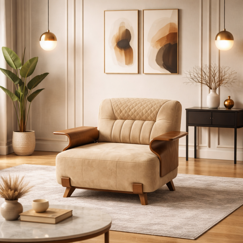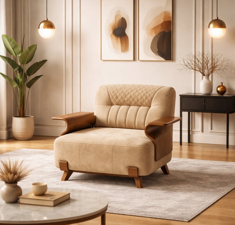 Product description: The Lexus Accent Chair is designed to add a touch of sophistication, comfort, and personality to your living space. With its elegant silhouette and refined detailing, this chair serves as a stylish statement piece while offering a cozy spot for relaxation. Perfect for living rooms, bedrooms, lounges, or reading corners, the Lexus accent chair blends effortlessly with modern, contemporary, and luxury interiors. Plush cushioning, supportive seating, and a well-balanced structure ensure comfort for everyday use, while its compact form makes it easy to place in any setting.