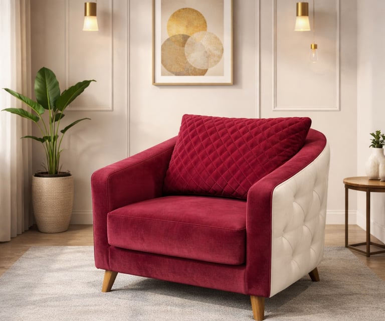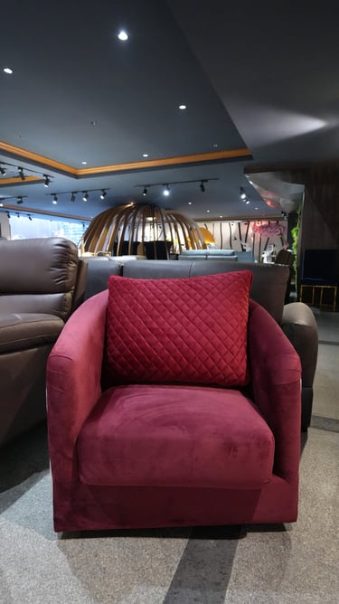 Product description: The LUNA Accent Chair is designed to bring soft elegance, comfort, and modern charm to your living space. With its graceful silhouette and refined proportions, this chair works beautifully as a statement piece or as complementary seating in stylish interiors. Ideal for living rooms, bedrooms, lounges, or reading corners, the LUNA accent chair offers a comfortable seating experience with plush cushioning and a supportive backrest. Its compact yet elegant design makes it easy to place while enhancing the overall ambience of the room. Blending seamlessly with modern, contemporary, and luxury décor styles, Model LUNA adds warmth and sophistication to any setting.