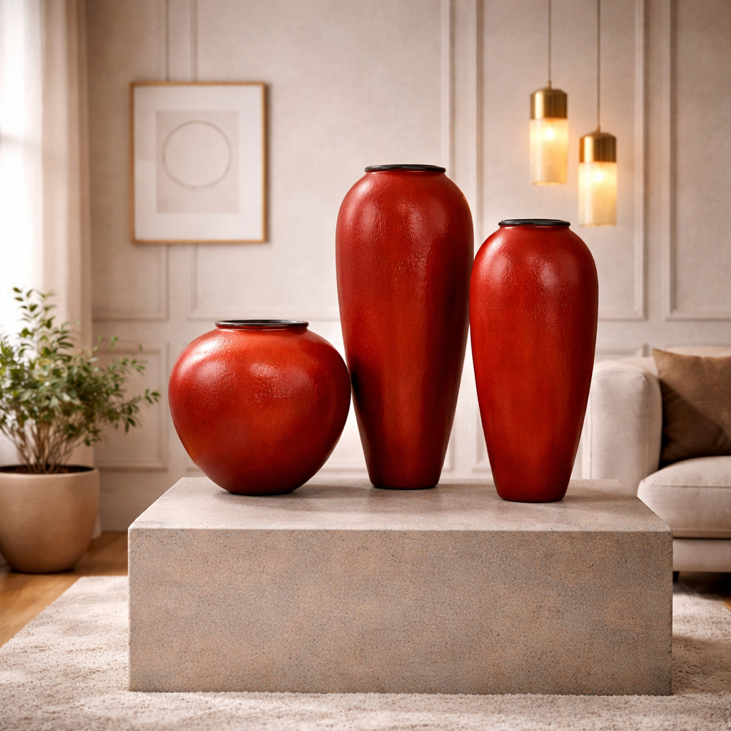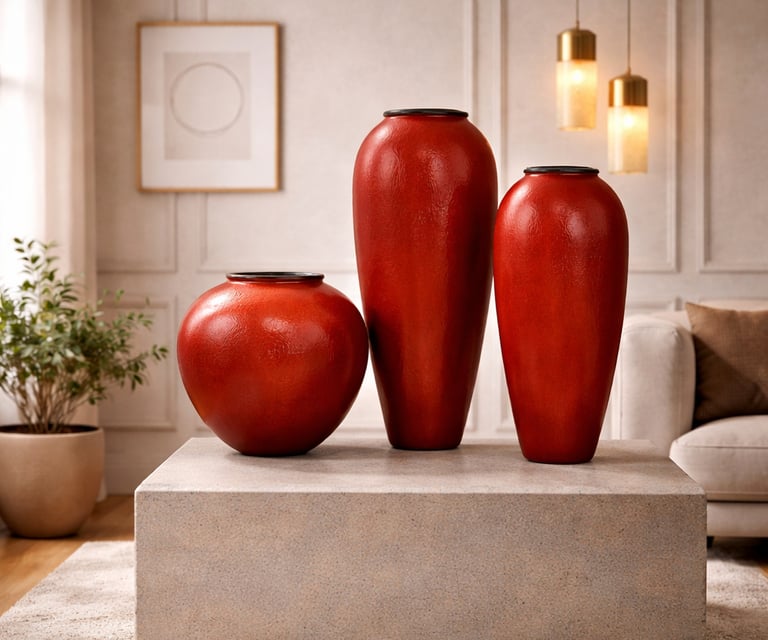 Red Ceramic Vase Trio