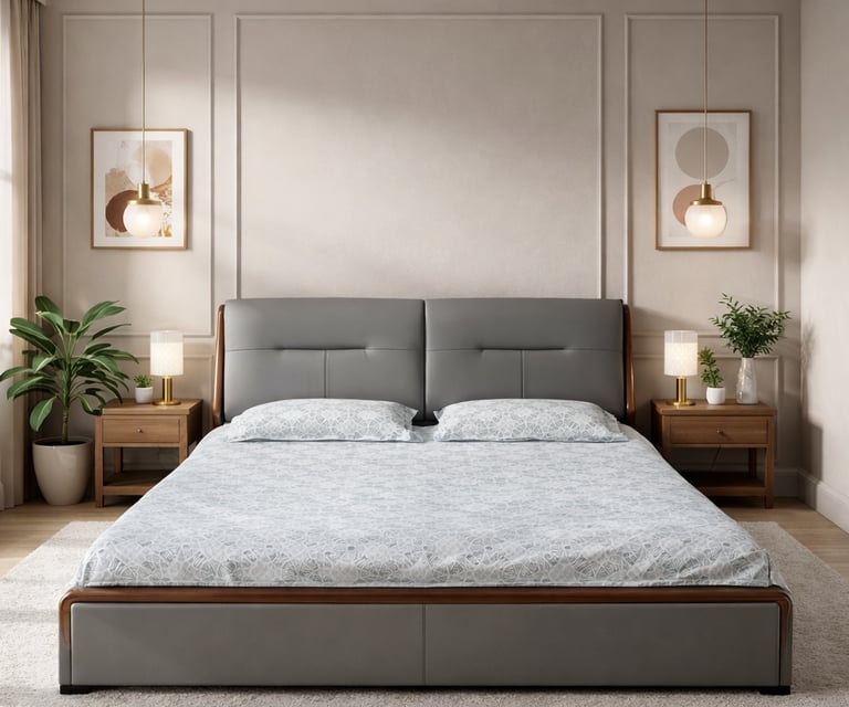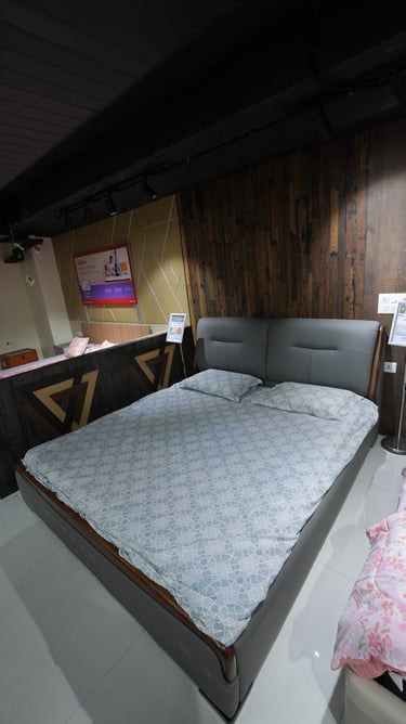 Product description: The 17915 King Size Bed is crafted to offer spacious comfort, elegant design, and dependable durability for modern bedrooms. With its well-defined structure and refined aesthetics, this bed creates a relaxing and luxurious sleeping environment while serving as a stylish centerpiece. Built using high-quality materials and a strong internal frame, the bed ensures excellent stability and long-term performance. The thoughtfully designed headboard enhances visual appeal and provides comfortable support for reading or relaxing in bed. Suitable for modern, contemporary, and luxury interiors, Model 17915 blends comfort, functionality, and timeless style.