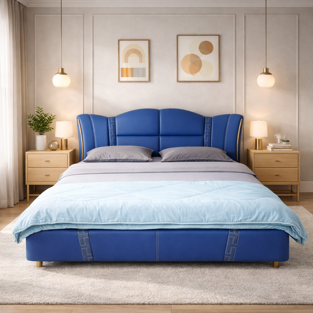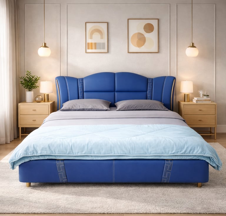 Product description: The 8061 / EY44 King Size Bed is designed to offer expansive comfort, elegant styling, and reliable durability for premium bedrooms. With its well-proportioned structure and refined design details, this bed creates a calm and luxurious sleeping environment while acting as a strong visual centerpiece. Crafted using high-quality materials and supported by a sturdy internal frame, the bed ensures excellent stability and long-term performance. The thoughtfully designed headboard enhances the overall aesthetic and provides comfortable back support for reading or relaxing in bed. Perfect for modern, contemporary, and luxury interiors, Model 8061 / EY44 blends functionality with timeless appeal.