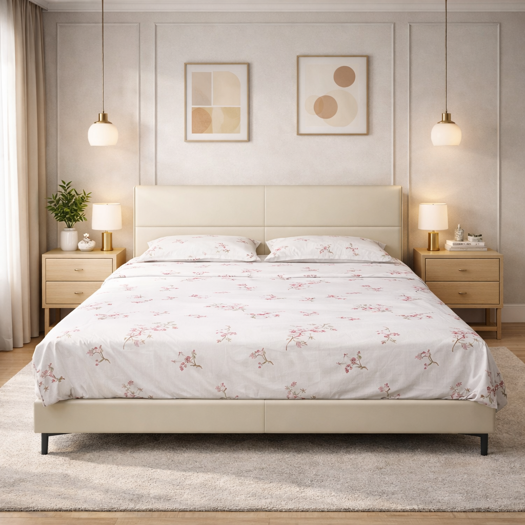 Product description: The K13 King Size Bed is crafted to offer expansive comfort, elegant design, and dependable durability for modern bedrooms. With its clean lines and well-balanced proportions, this bed creates a calm and sophisticated sleeping environment while serving as a stylish centerpiece. Built using high-quality materials and a strong internal frame, the bed ensures excellent stability and long-term performance. The thoughtfully designed headboard enhances the overall aesthetics and provides comfortable back support—ideal for reading or relaxing in bed. Perfect for modern, contemporary, and luxury interiors, Model K13 seamlessly blends comfort, functionality, and timeless style.