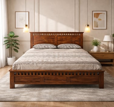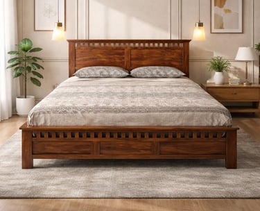 Product Details: The SHEESHAM King Size Bed is a timeless piece crafted from premium Sheesham (Indian Rosewood), known....