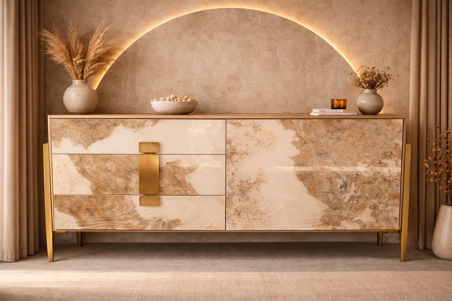 Product description: The 8725# Buffet Table is designed to combine modern elegance with practical storage, making it a perfect addition to dining rooms and living spaces. With its clean lines and refined proportions, this buffet table enhances your interior while providing convenient space for organization and display. Crafted from quality materials with a sturdy structure, the 8725# offers a spacious tabletop and functional storage, ideal for serving, storing crockery, or showcasing décor pieces. Its versatile design blends effortlessly with modern, contemporary, and luxury interiors....