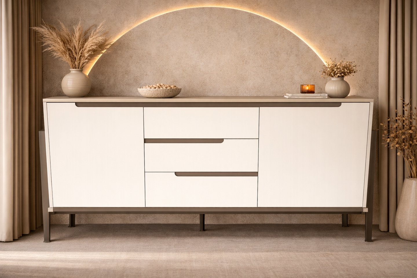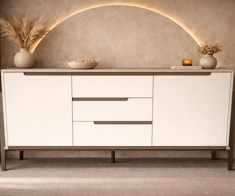 Product description: The 8820# Buffet Table is designed to bring modern elegance and practical storage to your dining or living space. With its sleek lines and refined proportions, this buffet table enhances your interior while offering smart organization for everyday use. Crafted with quality materials and a sturdy build, the 8820# Buffet Table features a spacious tabletop and functional storage compartments, making it ideal for serving, storing crockery, or displaying décor accents. Its versatile design blends effortlessly with modern, contemporary, and luxury interiors, suitable for both residential and hospitality settings.
