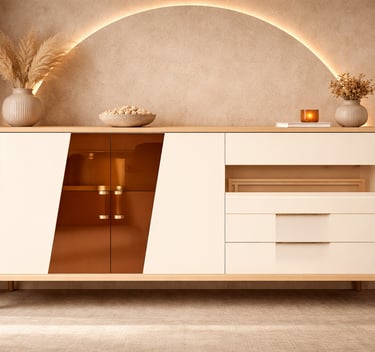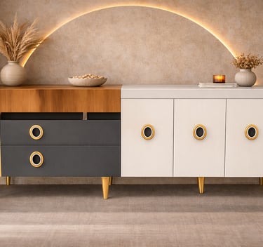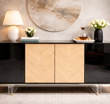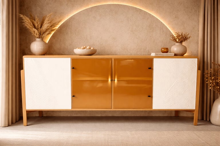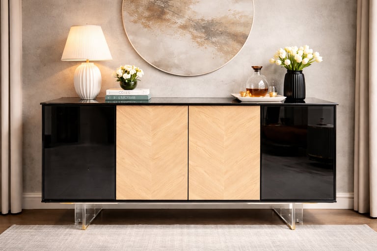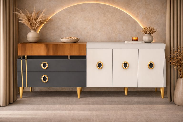 Product Details: The A013 Buffet Table is designed to bring contemporary elegance and smart storage to your dining or living....