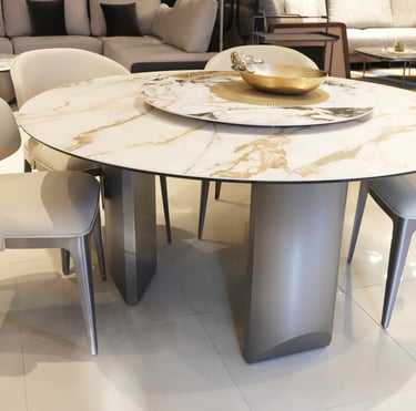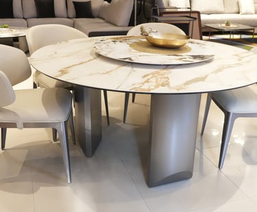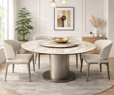 Product description: The KT-1809B / 801 Manhattan Round Table brings sleek urban elegance and refined modern design into your space. Inspired by contemporary city aesthetics, this round table features clean lines, balanced proportions, and a sophisticated presence that works beautifully in dining areas, lounges, and premium interiors. The round tabletop encourages comfortable seating and easy conversation, while the sturdy central base ensures excellent stability and generous legroom. Crafted with high-quality materials and a premium finish, the Manhattan Round Table blends seamlessly with modern, contemporary, and luxury décor styles.