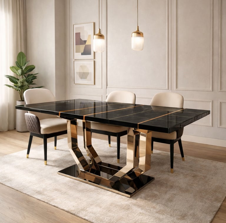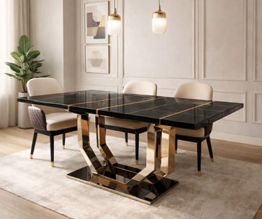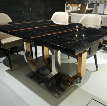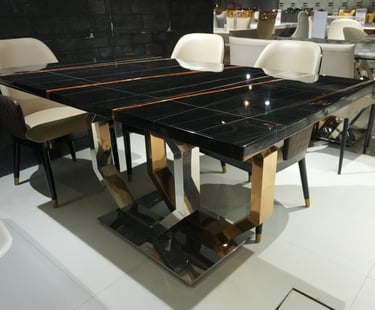 Product description: The S218 / 376 / 266 Marble Dining Set (1+4) is crafted to bring refined elegance and everyday comfort to compact dining spaces. This premium set includes one marble dining table paired with four comfortable dining chairs, making it ideal for apartments, smaller dining rooms, and intimate family settings. The natural marble tabletop features a smooth, polished finish that highlights the unique beauty of stone while offering durability and easy maintenance. Supported by a strong and stable base, the table is built for long-lasting use. The four matching chairs are ergonomically designed with supportive backrests and sturdy construction, ensuring comfort during every meal. Perfect for modern, contemporary, and luxury interiors, Model S218 / 376 / 266 serves as a stylish centerpiece for elegant dining spaces.