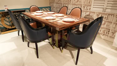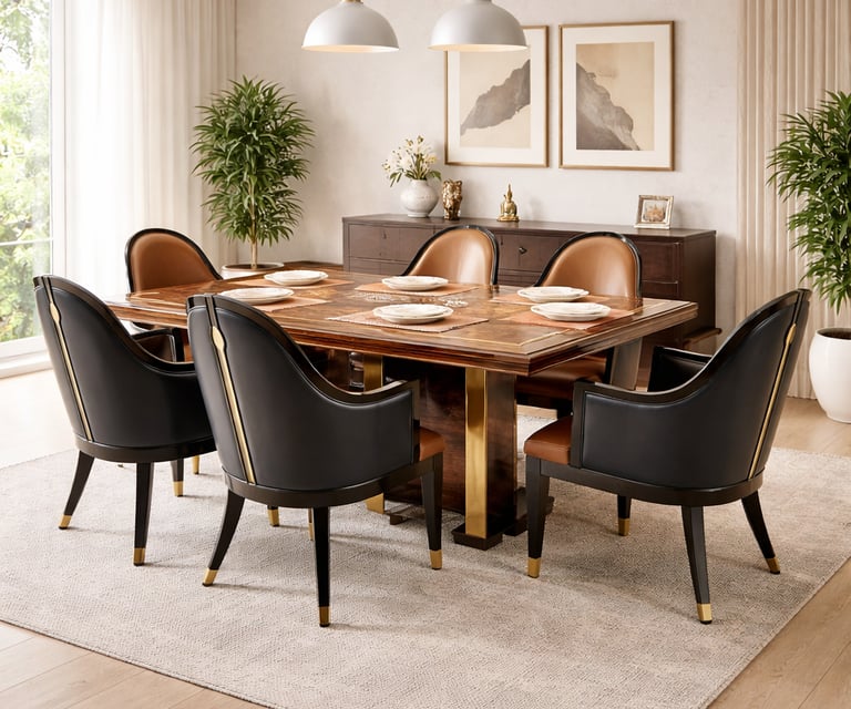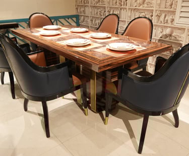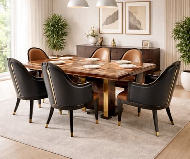 Product description: The S220 / 1093 / 458 / 333-13 Marble Dining Set (1+6) is crafted to bring timeless elegance, premium materials, and everyday comfort to your dining space. This sophisticated set includes one beautifully finished marble dining table paired with six comfortable dining chairs, making it ideal for family dining, celebrations, and formal entertaining. The natural marble tabletop features a smooth, polished finish that highlights the unique veining and character of the stone, creating a luxurious focal point while remaining durable and easy to maintain. Supported by a strong and stable base, the table ensures long-lasting performance. The six matching chairs are ergonomically designed with supportive backrests and sturdy construction, providing comfort during extended dining experiences. Perfect for modern, contemporary, and luxury interiors, Model S220 / 1093 / 458 / 333-13 serves as an elegant centerpiece that enhances the overall ambience of your dining room.