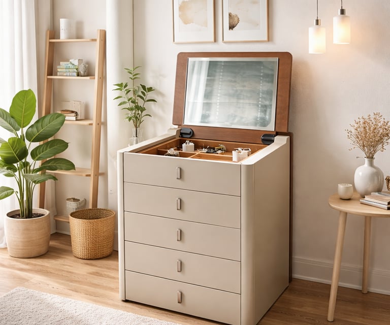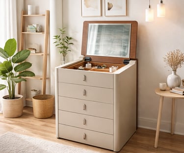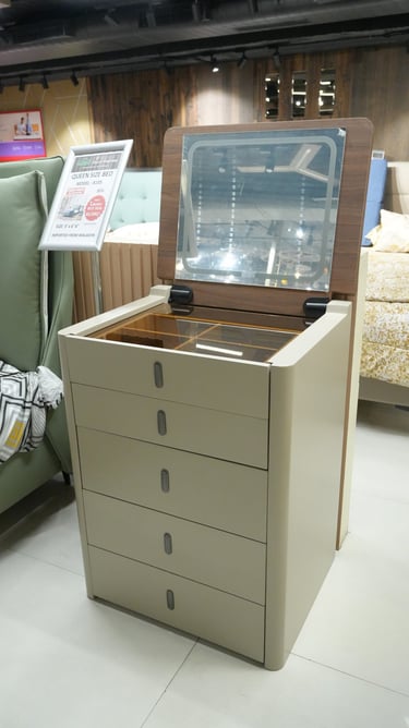Product description: The Model 3767 Multi-Function Dresser is designed to combine elegance, smart storage, and everyday convenience in one refined unit. Perfect for modern bedrooms, this dresser serves as a grooming station, storage solution, and style statement—all in a compact, space-efficient design. Featuring a thoughtfully planned layout, the dresser includes a mirror, spacious tabletop, and multiple drawers/compartments to neatly organize cosmetics, accessories, skincare, and daily essentials. Its clean lines and contemporary finish blend seamlessly with modern, contemporary, and luxury interiors. Built with quality materials and a sturdy structure, Model 3767 ensures durability while keeping your space organized and clutter-free....