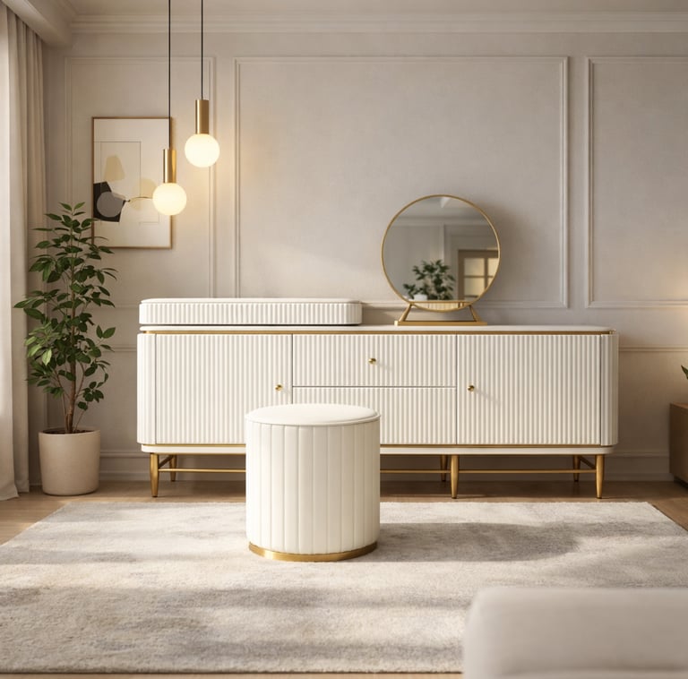 Product description: The Model 960 Dressing Table is designed to bring elegance, functionality, and everyday convenience to your bedroom. With its clean lines and refined design, this dressing table creates a stylish personal grooming space while enhancing the overall interior aesthetic. Crafted with quality materials and a sturdy structure, the table offers a smooth surface and well-planned storage for cosmetics, accessories, and daily essentials. Its balanced proportions and elegant finish make it suitable for modern, contemporary, and classic bedroom interiors. Perfect for daily use, Model 960 combines practicality with timeless style.