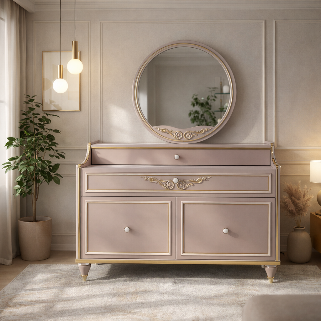 Product description: The BIACO Dressing Table is crafted to bring refined elegance, functionality, and modern style to your bedroom. With its sleek design and balanced proportions, this dressing table creates a sophisticated personal grooming space while enhancing the overall ambience of the room. Designed with quality materials and a sturdy structure, the BIACO dressing table offers a smooth tabletop and practical storage for cosmetics, accessories, and daily essentials. Its clean lines and elegant finish make it a perfect fit for modern, contemporary, and luxury bedroom interiors.