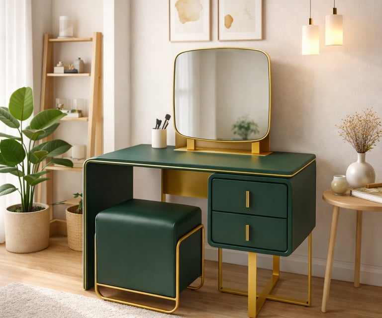 Elegant dressing mirror with matching stool