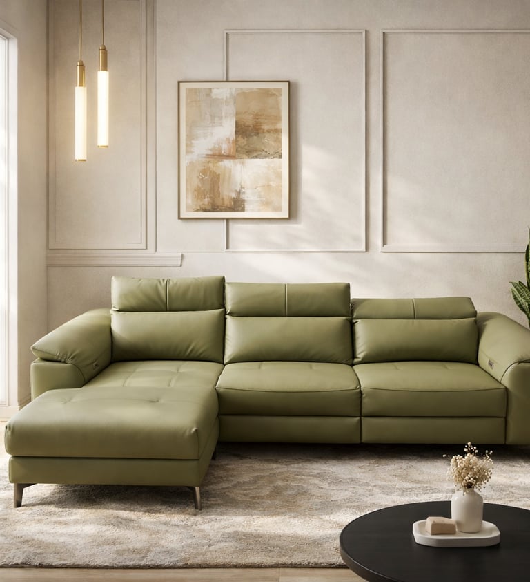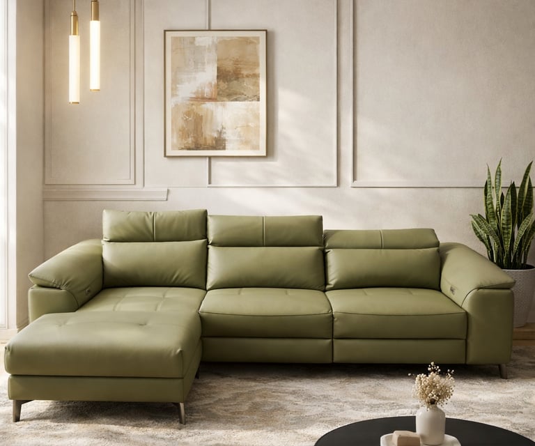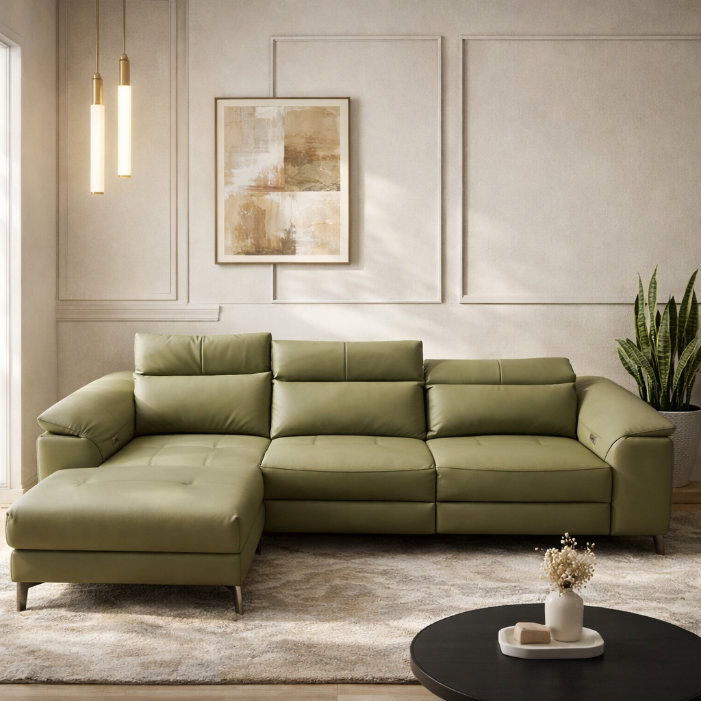 Product description: The Model 2163 Leather Lounger Sofa with Recliner is designed for those who seek ultimate relaxation paired with modern luxury. Featuring an elegant lounger (chaise) design combined with a built-in recliner, this sofa offers exceptional comfort for lounging, resting, and everyday relaxation. Upholstered in premium-quality leather, the sofa delivers a rich, sophisticated appearance with durability and easy maintenance. The reclining mechanism allows you to adjust your seating position effortlessly, while plush cushioning and ergonomic back support ensure superior comfort for long hours of use. Built on a strong internal frame and styled with contemporary lines, Model 2163 fits seamlessly into modern, luxury, and upscale interiors, making it a perfect statement piece for stylish living rooms.