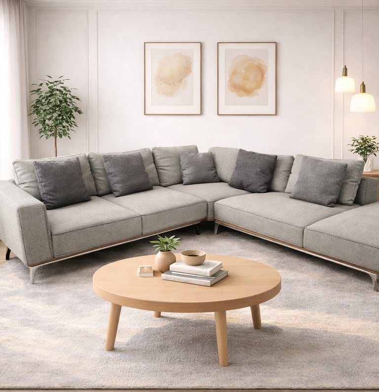 Product description: The 2L3307 L-Shape Fabric Sofa Set is designed to bring modern comfort, smart space utilization, and a warm aesthetic to your living room. Its contemporary L-shaped configuration maximizes seating while creating a cozy and inviting layout, making it ideal for apartments, family homes, and modern interiors. Upholstered in premium-quality fabric, this sofa offers a soft, breathable feel and a relaxed, stylish look that suits everyday living. Plush cushioning, supportive backrests, and well-designed armrests ensure superior comfort for lounging, socializing, or extended relaxation. Built on a strong internal frame with clean lines and balanced proportions, Model 2L3307 blends effortlessly into modern, contemporary, and casual décor styles.
