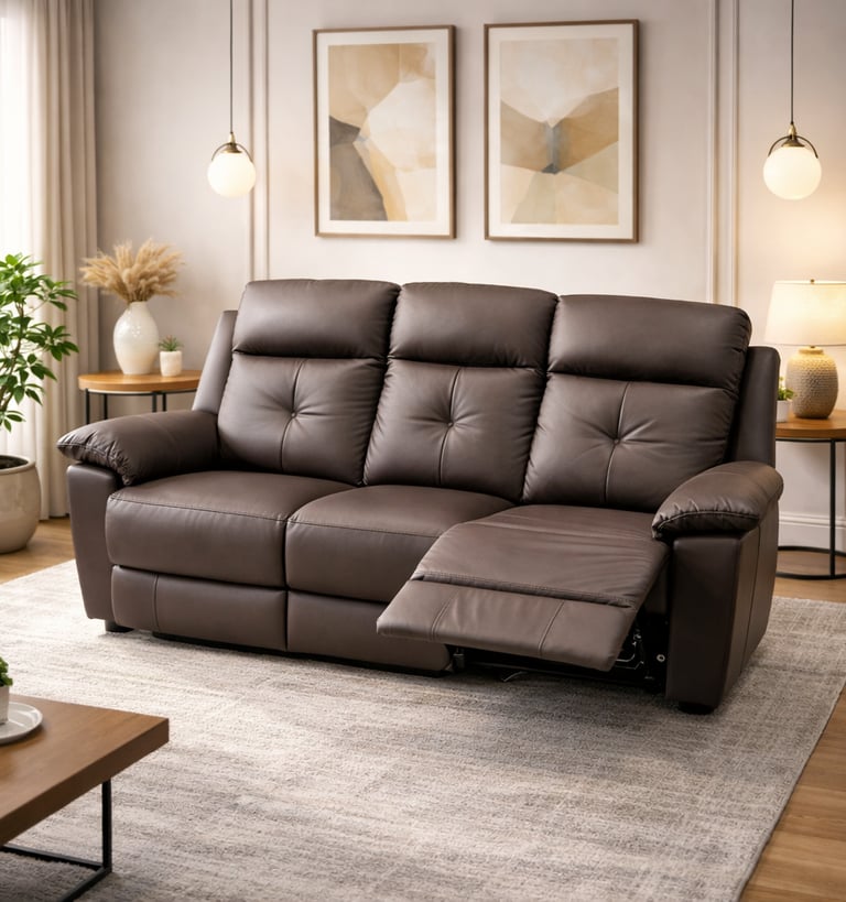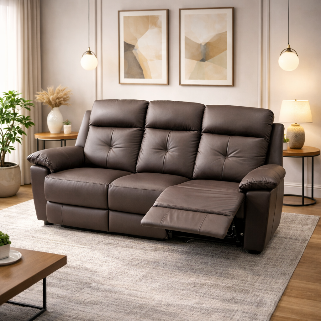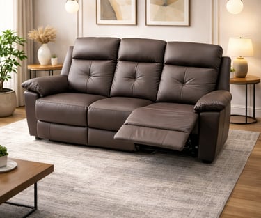 Product description: The Model 1159 – 3+1+1 Leather Manual Recliners Set is designed to deliver premium comfort with classic reclining functionality. Featuring a practical three-seater and two single-seater recliners, this set offers personalized relaxation for every member of the family. Upholstered in premium-quality leather, the recliners provide a rich, luxurious look along with durability and easy maintenance. Each recliner is equipped with a smooth manual reclining mechanism, allowing you to effortlessly adjust the backrest and footrest to your preferred comfort position. Plush cushioning and ergonomic back support ensure superior comfort for long hours of use. Built on a strong and durable internal frame, Model 1159 blends comfort-focused design with elegant styling, making it ideal for modern and luxury living rooms.
