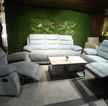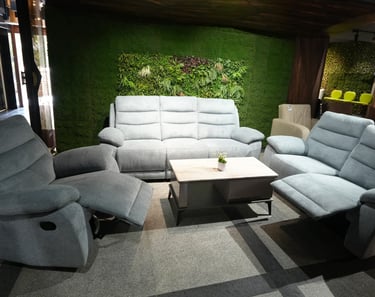 Product description: The Model 1414 – 3+2+1 Manual Recliner Sofa Set is designed for everyday comfort with effortless functionality. Featuring a practical three-seater, two-seater, and single-seater configuration, each piece is equipped with a manual reclining mechanism, allowing you to relax at your own pace. Upholstered in high-quality fabric, the sofa set offers a soft, breathable feel that is ideal for daily family use. The smooth manual recliner action lets you easily adjust your seating position, while plush cushioning and ergonomic back support ensure lasting comfort. Built on a strong and durable internal frame, Model 1414 blends comfort-focused design with contemporary styling, making it a perfect choice for modern living rooms and entertainment spaces.