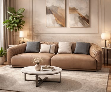 product description: Elevate your living space with the HFS-22416 Leather Sofa Set, a perfect blend of luxury, comfort, and contemporary design. Crafted for modern homes, this premium configuration includes a 4-seater, 3-seater, lounge (chaise), and ottoman, offering generous seating and versatile relaxation options for family and guests alike. Upholstered in high-quality genuine leather, the sofa delivers a rich, elegant look while ensuring long-lasting durability and easy maintenance. The plush cushioning, ergonomic back support, and wide armrests provide exceptional comfort, making it ideal for everyday lounging or entertaining. The matching ottoman adds flexibility—use it as a footrest, extra seating, or a stylish center piece. With its clean lines and refined silhouette, Model HFS-22416 seamlessly complements both modern and classic interiors.