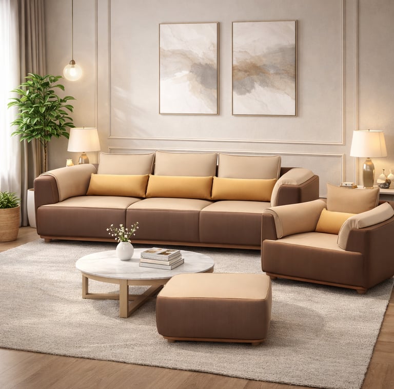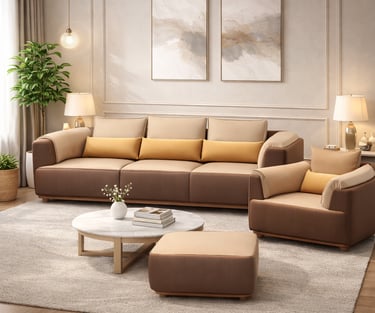 product description: The SF-1107 Leather Sofa Set is a perfect combination of modern elegance, comfort, and versatility. Designed in a practical 4+1 configuration with a matching ottoman, this sofa set offers generous seating along with flexible lounging options, making it ideal for both everyday living and entertaining guests. Upholstered in premium-quality leather, the sofa delivers a sophisticated look with a soft, durable finish that is easy to maintain. The deep, plush cushions and ergonomically designed backrests provide excellent support, while the ottoman adds extra functionality—use it as a footrest, additional seating, or a stylish accent piece. With its clean lines and timeless design, Model SF-1107 blends seamlessly into contemporary as well as classic interiors, enhancing the overall ambience of your living space.