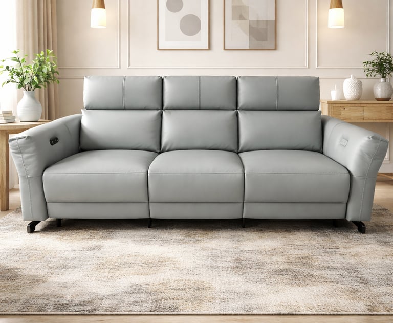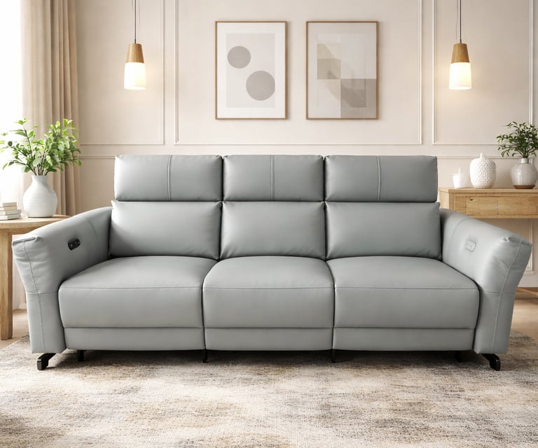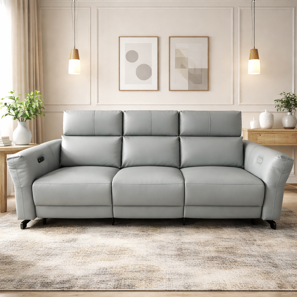 Product description: The Model 2382 – 3+2+1 Leather Motor Recliner Sofa Set is designed to deliver advanced comfort, effortless operation, and premium style. Featuring a versatile three-seater, two-seater, and single-seater configuration, this set ensures personalized relaxation for every member of the family. Upholstered in premium-quality leather, the sofa set offers a rich, sophisticated appearance along with durability and easy maintenance. Each seat is equipped with a smooth motorized reclining mechanism, allowing easy adjustment at the touch of a button. Plush cushioning, ergonomic back support, and deep seating provide exceptional comfort for long hours of lounging and entertainment. Built on a strong and durable internal frame with contemporary styling, Model 2382 blends seamlessly into modern and luxury interiors, making it ideal for stylish living rooms and home theater spaces.