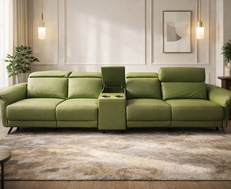 Product description: The Model 2A55 – 4-Seater Recliner Sofa with Console is designed to bring home-theater comfort and modern convenience into your living space. With a spacious four-seater configuration and an integrated center console, this sofa is perfect for family lounging, movie nights, and entertainment-focused living rooms. Equipped with smooth reclining mechanisms, the seats allow effortless relaxation, while plush cushioning and ergonomic back support ensure superior comfort. The center console adds functionality with cup holders and storage space, keeping essentials within easy reach. Built on a strong and durable internal frame and styled with a contemporary design, Model 2A55 blends seamlessly into modern and luxury interiors, making it an ideal choice for stylish homes and entertainment spaces.