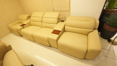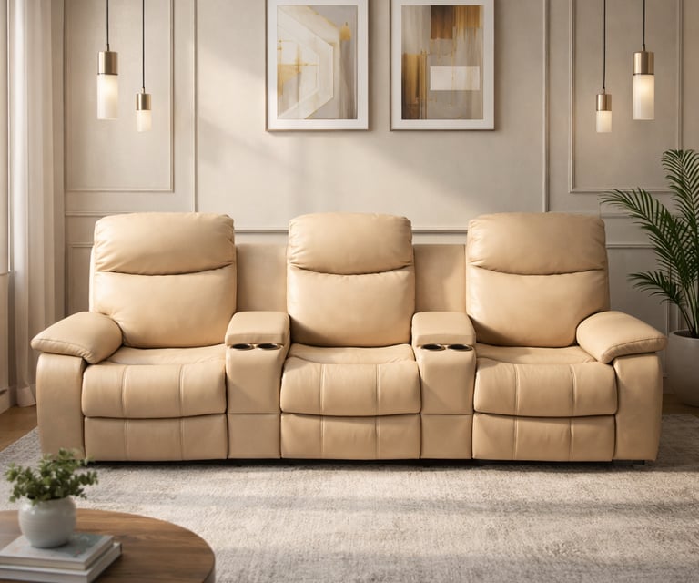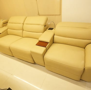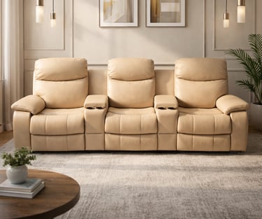 Product description: The G313 3-Seater Home Theater Recliner is designed to deliver a true cinema-style experience in the comfort of your home. Perfect for dedicated home theaters and entertainment rooms, this recliner offers spacious seating, premium comfort, and immersive relaxation for movie nights and binge watching. Featuring individual reclining seats, the sofa allows each user to recline independently for personalized comfort. Plush cushioning, ergonomic back support, and well-padded armrests ensure superior relaxation during long viewing sessions. The wide seating layout provides ample space while maintaining a sleek, theater-inspired design. Built on a strong and durable internal frame, Model G313 combines comfort-focused functionality with modern styling, making it an ideal choice for luxury home theater setups.