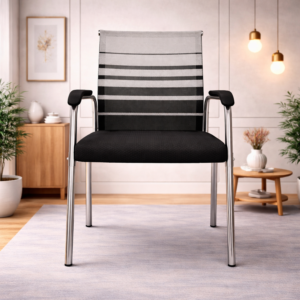 Product description: The Visitor Chair Model Number: 3029 is This office chair is designed to provide comfortable and supportive seating for long working hours. It features an ergonomic backrest that helps maintain proper posture and reduces strain on the spine. The chair is crafted with a sturdy frame and high-quality cushioning to ensure durability and long-lasting comfort. Its modern and professional design makes it suitable for offices, workstations, cabins, and home office setups. The smooth finish and premium upholstery add a stylish touch while enhancing user convenience and productivity throughout the day.