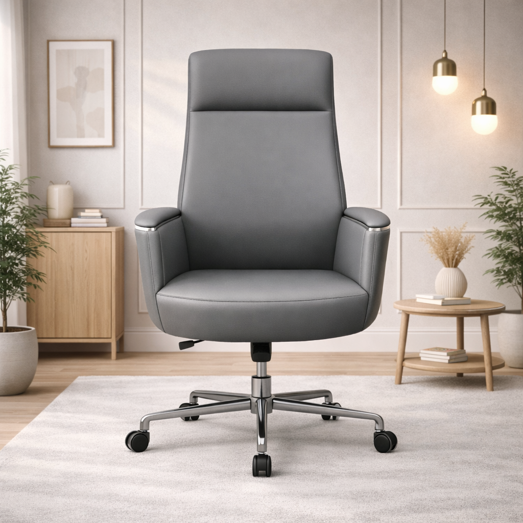 Product description: The Revolving Chair Model Number: 6A32 is This office chair is designed to provide comfortable and supportive seating for long working hours. It features an ergonomic backrest that helps maintain proper posture and reduces strain on the spine. The chair is crafted with a sturdy frame and high-quality cushioning to ensure durability and long-lasting comfort. Its modern and professional design makes it suitable for offices, workstations, cabins, and home office setups. The smooth finish and premium upholstery add a stylish touch while enhancing user convenience and productivity throughout the day.