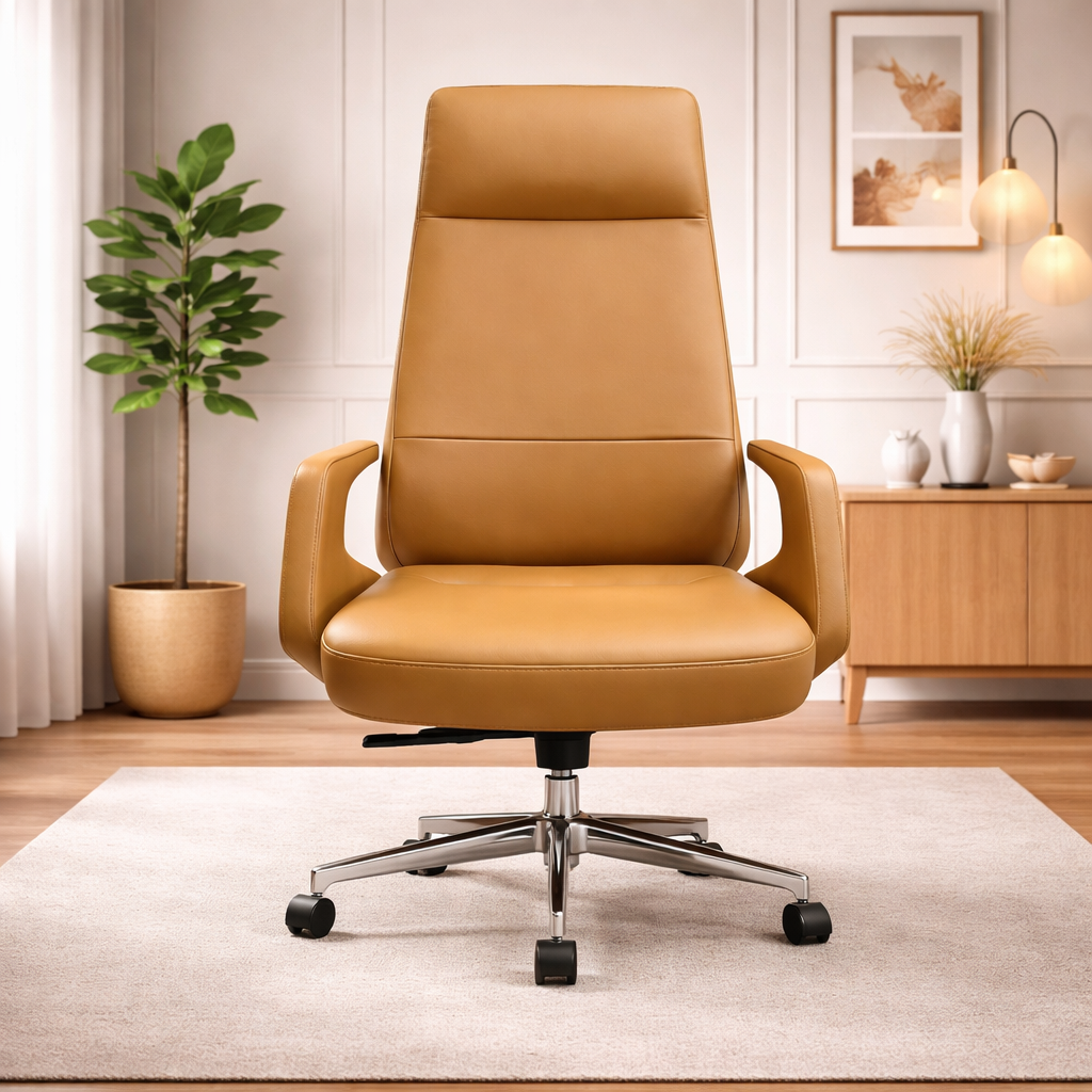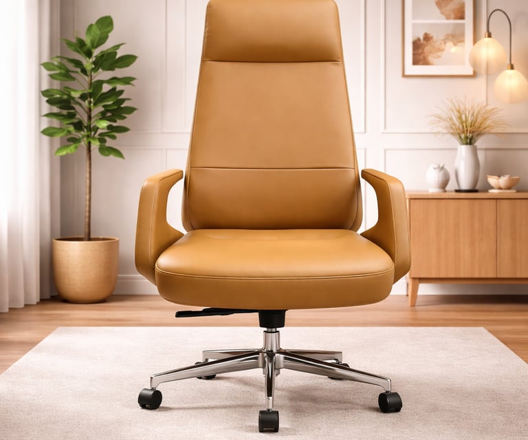 Product description: The Revolving Chair Model Number: Half Leather This office chair is designed to provide comfortable and supportive seating for long working hours. It features an ergonomic backrest that helps maintain proper posture and reduces strain on the spine. The chair is crafted with a sturdy frame and high-quality cushioning to ensure durability and long-lasting comfort. Its modern and professional design makes it suitable for offices, workstations, cabins, and home office setups. The smooth finish and premium upholstery add a stylish touch while enhancing user convenience and productivity throughout the day.