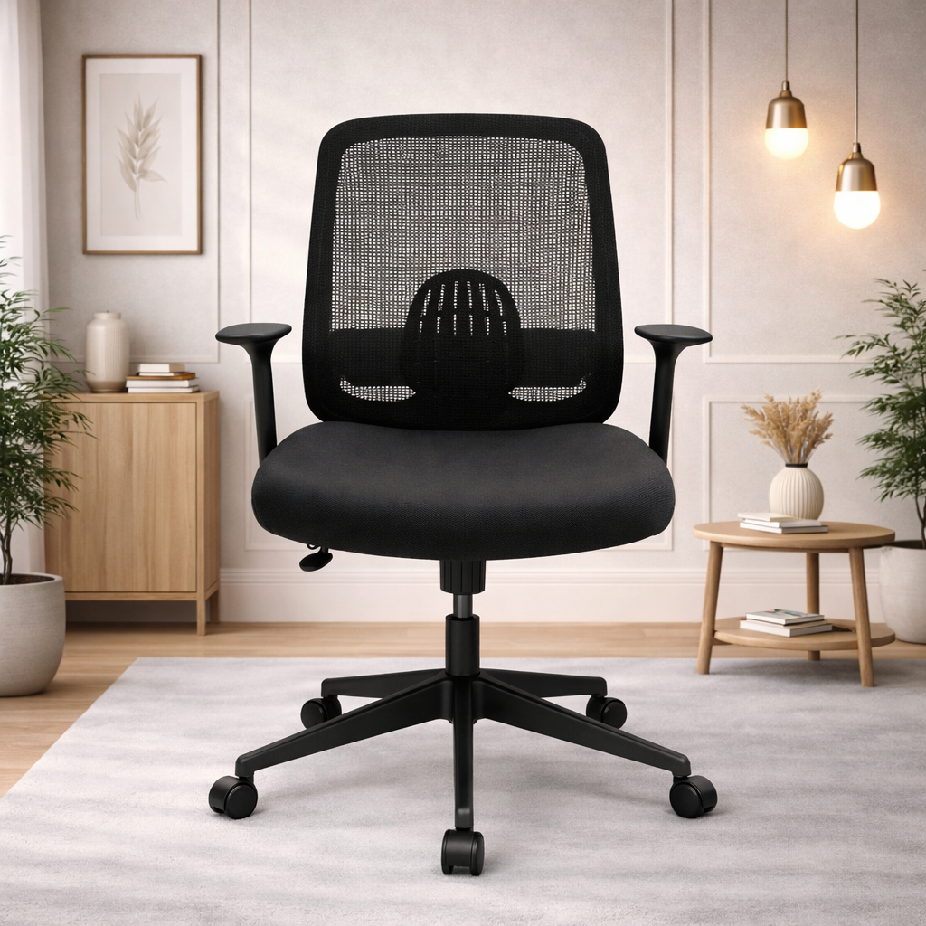 Product description: The Revolving Chair Model Number: J197B - Low Back is This office chair is designed to provide comfortable and supportive seating for long working hours. It features an ergonomic backrest that helps maintain proper posture and reduces strain on the spine. The chair is crafted with a sturdy frame and high-quality cushioning to ensure durability and long-lasting comfort. Its modern and professional design makes it suitable for offices, workstations, cabins, and home office setups. The smooth finish and premium upholstery add a stylish touch while enhancing user convenience and productivity throughout the day.
