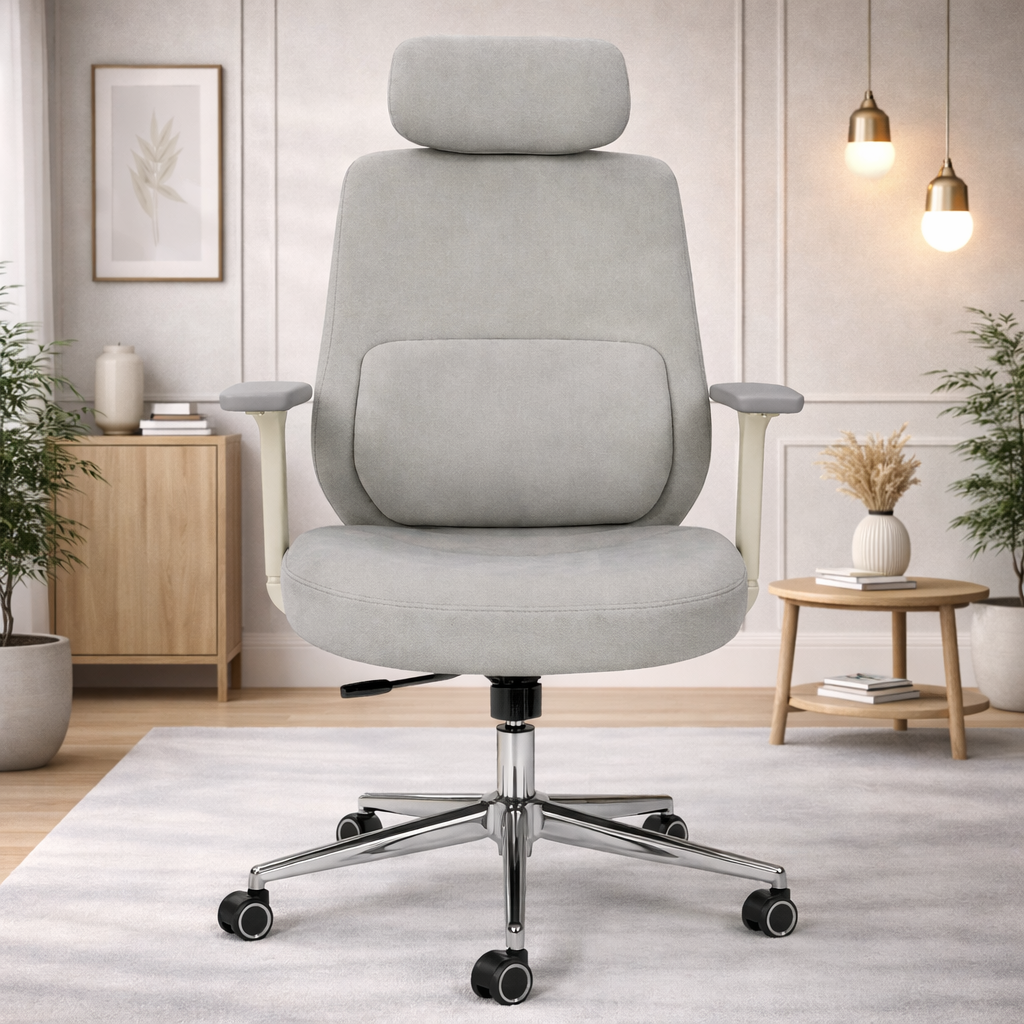 Product description: The Revolving Chair Model Number: J230A is This office chair is designed to provide comfortable and supportive seating for long working hours. It features an ergonomic backrest that helps maintain proper posture and reduces strain on the spine. The chair is crafted with a sturdy frame and high-quality cushioning to ensure durability and long-lasting comfort. Its modern and professional design makes it suitable for offices, workstations, cabins, and home office setups. The smooth finish and premium upholstery add a stylish touch while enhancing user convenience and productivity throughout the day.