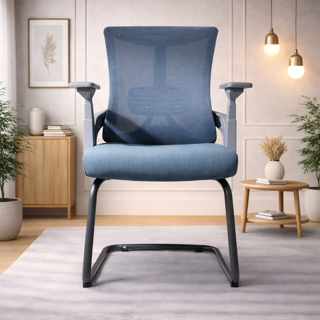 Product description: The Visitor Chair Model Number: Mesh & Fiber1 is This office chair is designed to provide comfortable and supportive seating for long working hours. It features an ergonomic backrest that helps maintain proper posture and reduces strain on the spine. The chair is crafted with a sturdy frame and high-quality cushioning to ensure durability and long-lasting comfort. Its modern and professional design makes it suitable for offices, workstations, cabins, and home office setups. The smooth finish and premium upholstery add a stylish touch while enhancing user convenience and productivity throughout the day.
