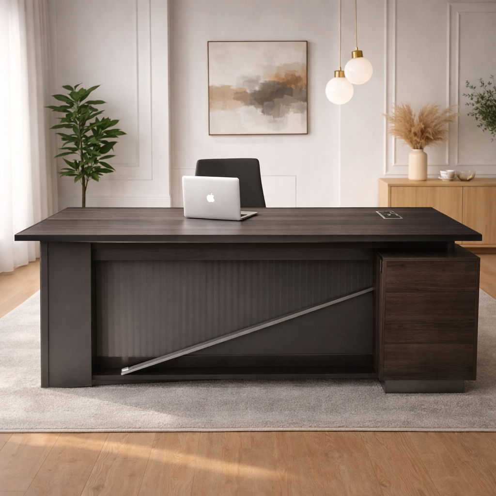 Product description: The 2312 Office Table is designed to provide a functional and professional workspace for modern offices and home office environments. Its spacious tabletop offers ample room for computers, documents, and everyday work essentials, supporting an organized and efficient setup. The strong and stable construction ensures durability and dependable performance for daily use. With a clean and contemporary design, the 6831 blends seamlessly into corporate offices, executive cabins, and home workspaces. Its balanced proportions support comfortable working hours while enhancing the overall appearance of the workspace. Practical, durable, and visually refined, this office table is an ideal choice for professional use.