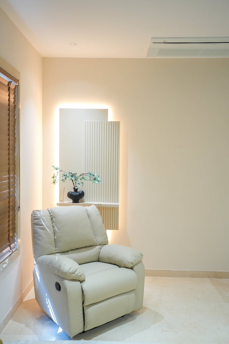 Our approach ensured optimal space utilization while maintaining a cohesive and elegant visual language across living and private areas. The result is a thoughtfully furnished environment that enhances everyday usability and elevates the overall residential experience.