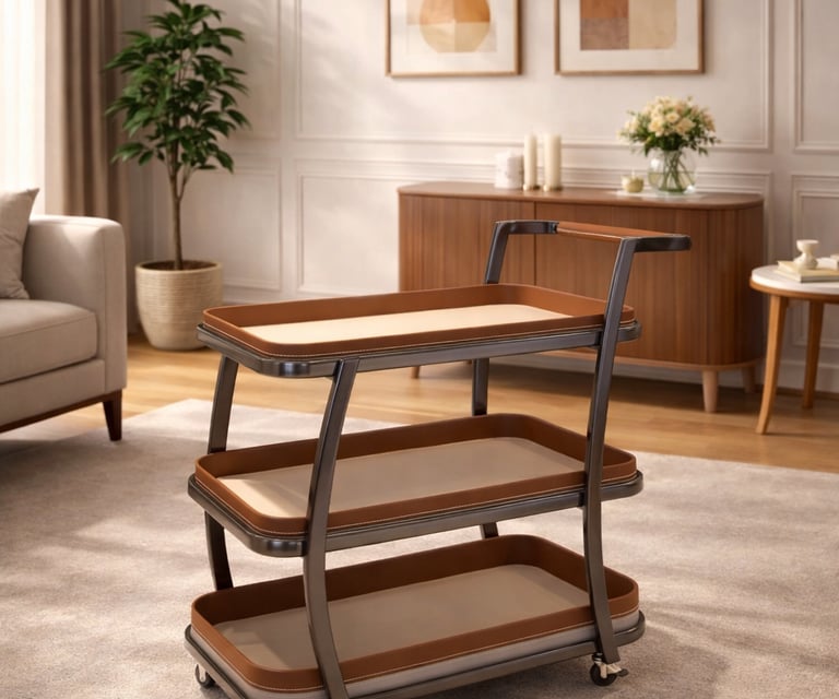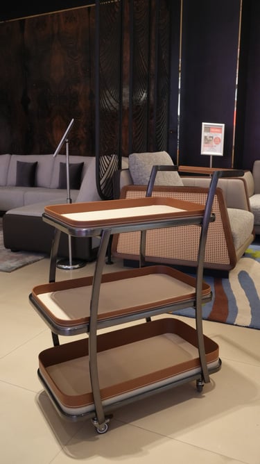 Product description: The 203 Serving Trolley is designed to bring convenience, mobility, and a modern touch to your serving experience. Perfect for dining rooms, living spaces, hotels, cafés, and restaurants, this trolley makes serving food and beverages smooth and effortless. Built with quality materials and a sturdy structure, the 203 features smooth-rolling wheels for easy movement and spacious shelves for serving, storage, or display. Its clean, contemporary design blends seamlessly with modern and contemporary interiors.