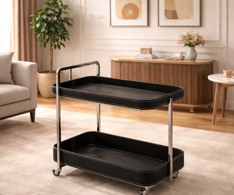 Product description: The 206 Serving Trolley is designed to bring convenience, mobility, and modern elegance to your serving experience. Perfect for dining rooms, living areas, hotels, cafés, and restaurants, this trolley makes serving food and beverages smooth and stylish. Crafted with quality materials and a sturdy structure, the 206 features easy-glide wheels for effortless movement and spacious shelves for serving, storage, or display. Its clean, contemporary design blends seamlessly with modern and luxury interiors.