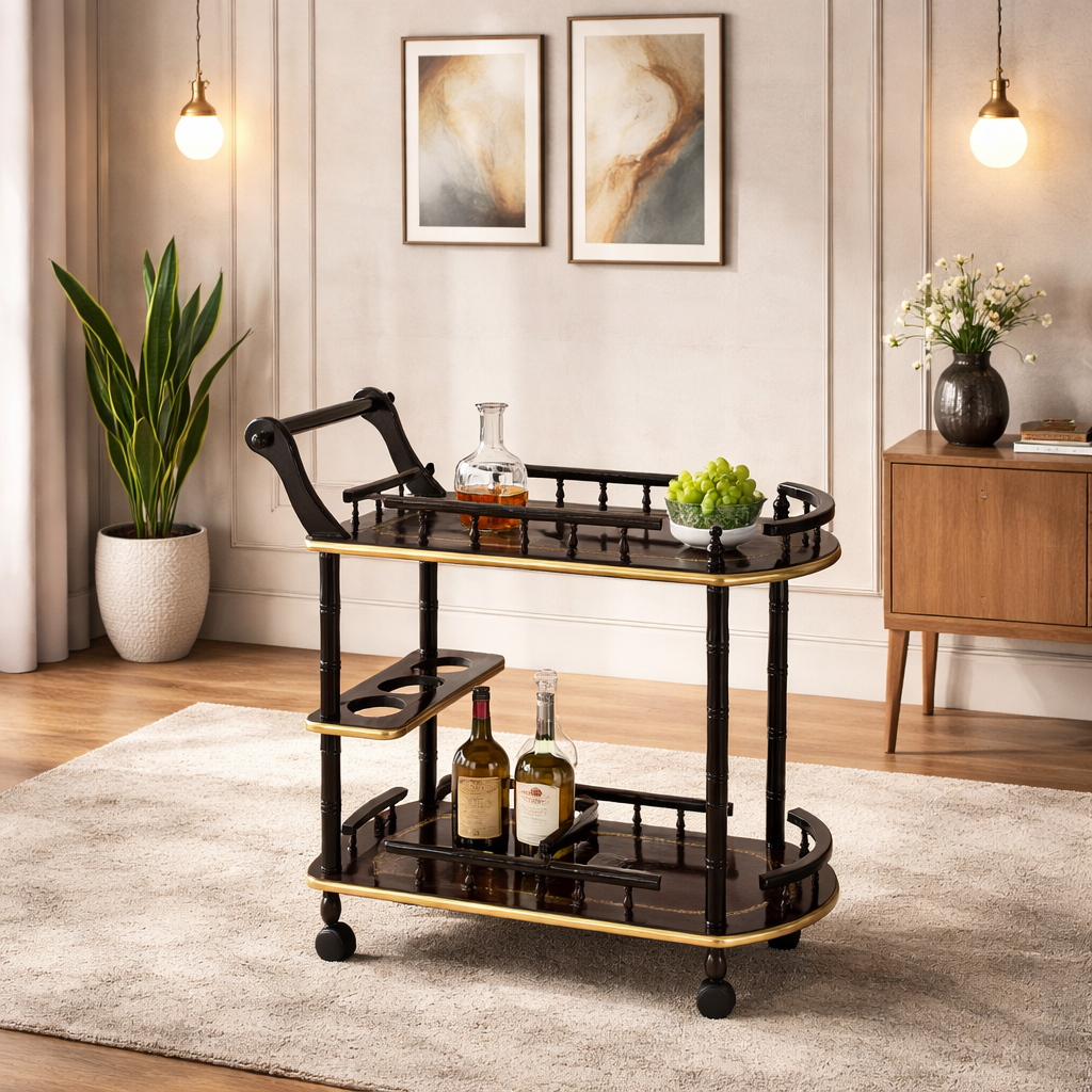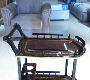 Product description: The 900ABFG Serving Trolley is designed to combine elegance, mobility, and everyday convenience, making it a perfect addition to dining rooms, living spaces, and hospitality settings. With its sleek design and functional layout, this trolley allows effortless serving and stylish presentation. Built with quality materials and a sturdy frame, the 900ABFG features smooth-rolling wheels for easy movement, along with spacious shelves for serving food, beverages, or displaying décor. Its modern design blends seamlessly with contemporary and luxury interiors, suitable for both residential and commercial use.