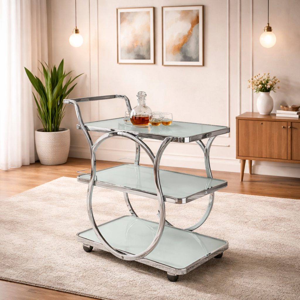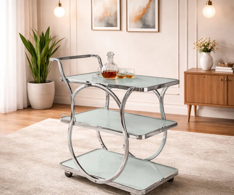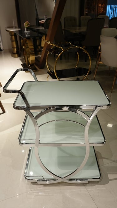Product description: The A-05 Serving Trolley is designed to offer effortless serving with a touch of modern elegance. Practical and stylish, it’s ideal for use in dining rooms, living spaces, hotels, cafés, and restaurants. Crafted with quality materials and a sturdy frame, the A-05 features smooth-rolling wheels for easy mobility and ample shelf space for serving food, beverages, or displaying décor items. Its clean, contemporary design blends seamlessly with modern and luxury interiors.