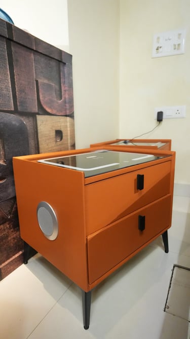 Product description: The 832#V Modern Wooden Bedside Table is designed to complement contemporary bedrooms with clean aesthetics and everyday practicality. Crafted with a modern silhouette and warm wooden finish, this bedside table adds both function and elegance to your sleeping space. Perfectly sized to sit beside the bed, it offers a convenient surface for lamps, books, phones, or décor, while providing organized storage for daily essentials. The sturdy construction ensures durability, and the minimalist design blends seamlessly with modern, contemporary, and luxury bedroom interiors.